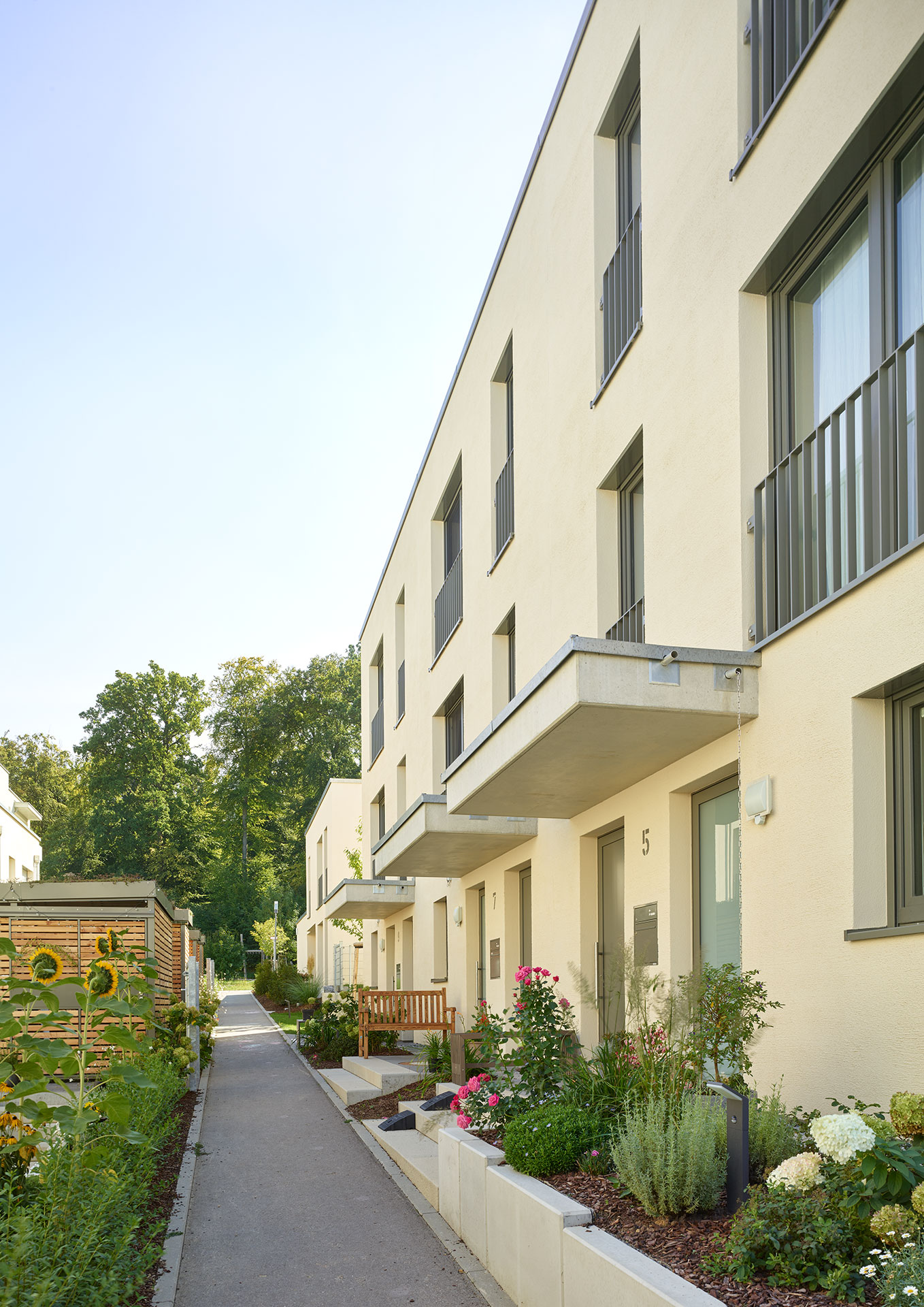 Projektbeschrieb: Prägende städtebauliche Faktoren des näheren Umfeldes sind eine homogene Bebauung hinsichtlich Höhe, Dichte und Nutzung. Die Topografie weist einen spürbaren Höhenunterschied auf. Im Südwesten werden die Akademiegärten durch dichten Wald und einen Fuß- und Radweg begrenzt. Ziel der Konzeption der unterschiedlichen Gebäude ist es, einen vielfältigen Mix unterschiedlicher mitunter flexibler Wohnformen darzustellen. Ebenso werden entsprechend den Vorgaben der Auslobung wesentliche Elemente der Gestaltungshandbuches "Akademiegärten" umgesetzt.